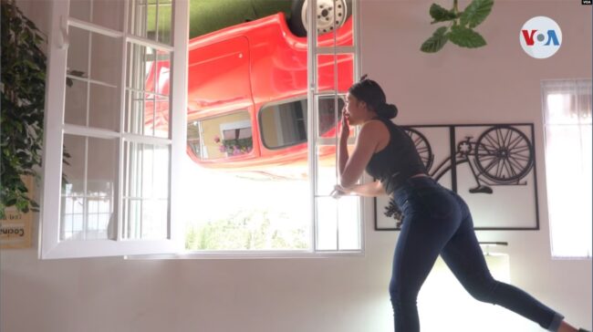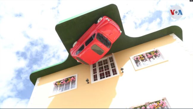 “No suelo experimentar este tipo de atracciones, pero fue un gran regalo que me dieron hoy. Es una experiencia única, dentro de la casa hay decoraciones interesantes como el Volkswagen Escarabajo que me pareció espectacular, así que esto hay que experimentarlo al menos una vez en la vida”, declaró a la VOA Santiago Ortegón, que aprovechó el aniversario con su novia para celebrarlo disfrutando de un recorrido por la Casa al Revés.